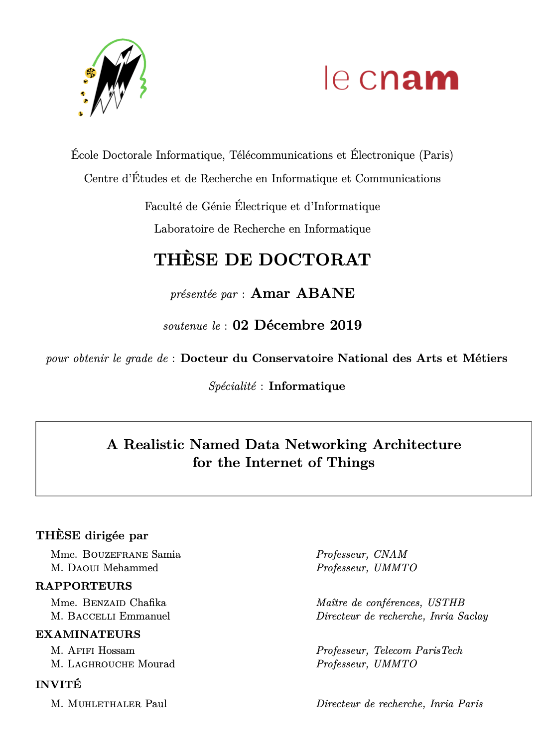 Thesis Title (French): Une Architecture NDN realiste pour l’Internet des Objets