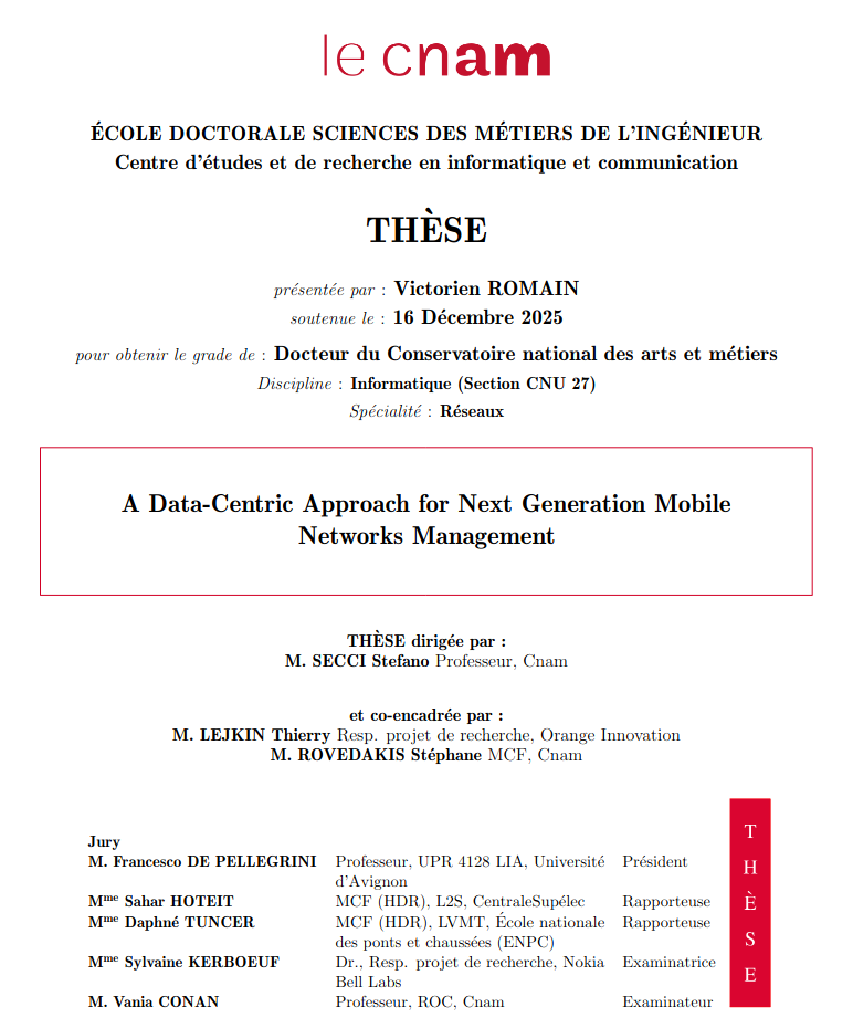 Victorien Romain, industrial Ph.D. student in collaboration with Orange Labs, will defend his Ph.D. thesis on December 16, 2025, at 9:30 a.m., in the Amphitheatre Gaston-Planté, Accès 35 – Level 1, 2 rue Conté, 75003 Paris, France.