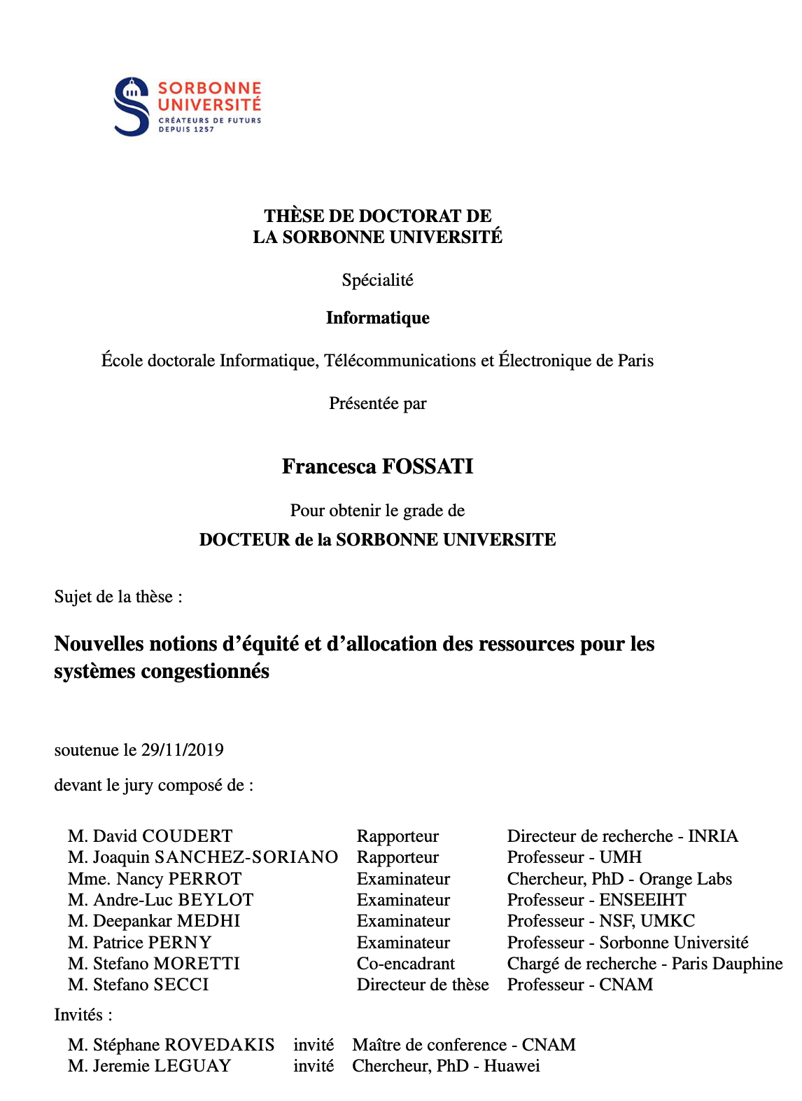 Thesis Title (French): Nouvelles notions d’équité et d’allocation des ressources pour les systèmes congestionnés